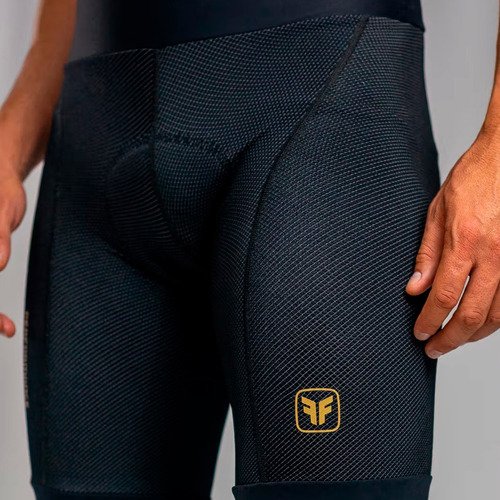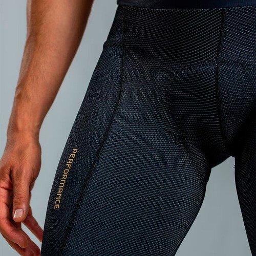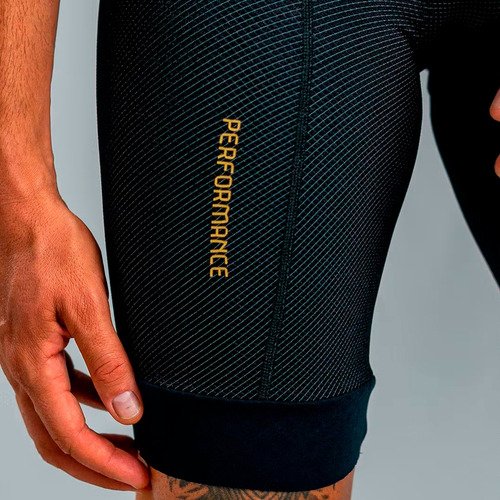 • Tecido Carbon (77% poliamida / 13% elastano / 10% poliéster): compressão moderada, ajuste anatômico e mobilidade – leve e aerodinâmico.